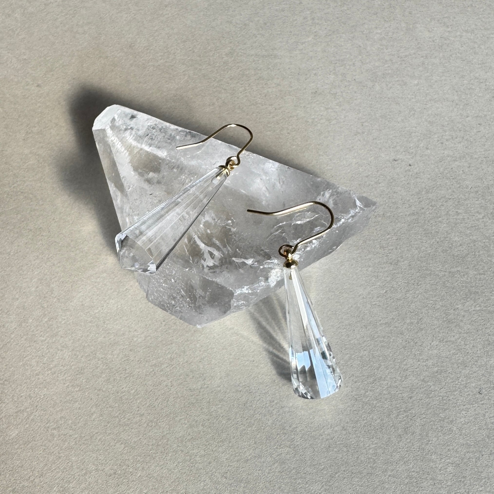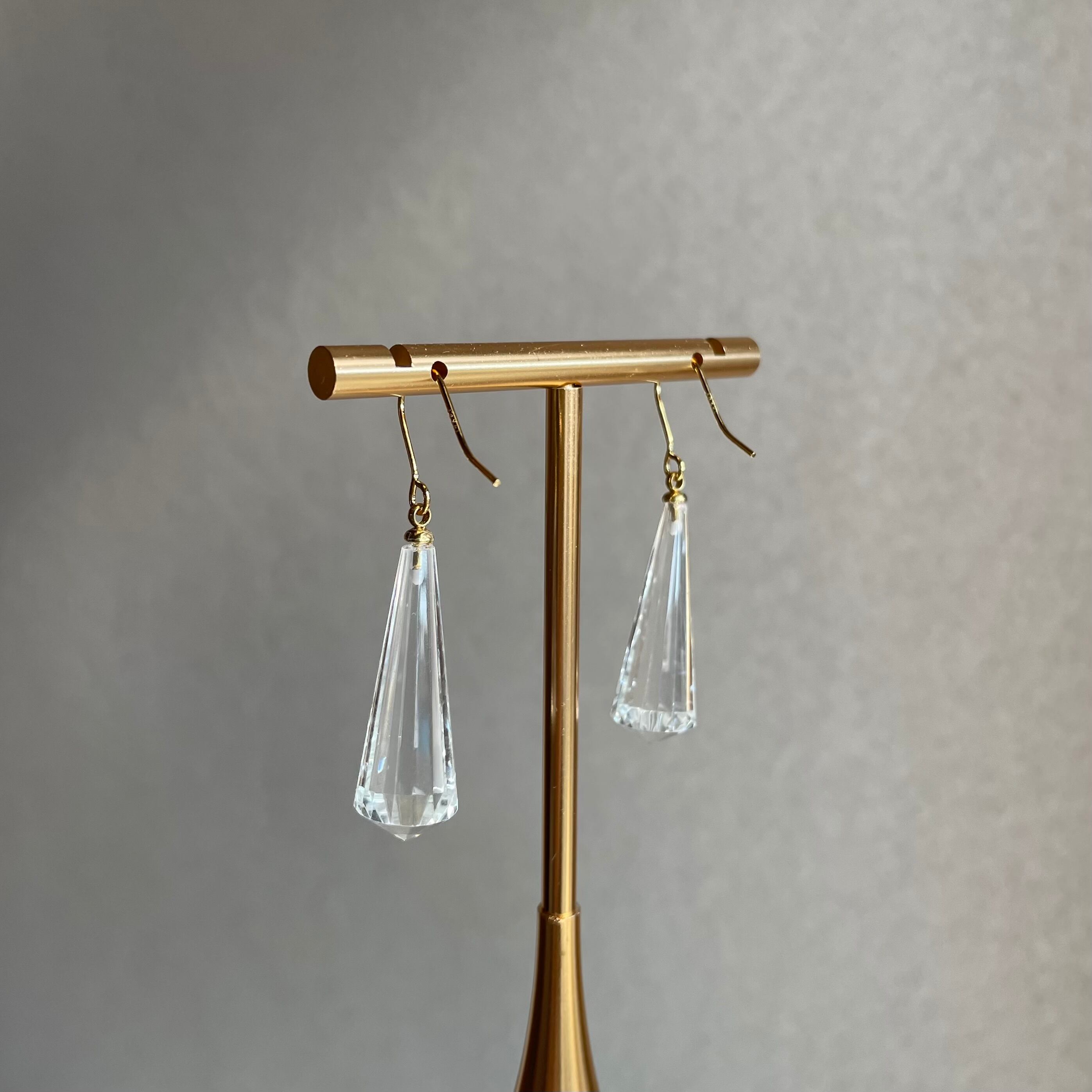 透明度の高い水晶を縦ラインの美しいテーパーシルエットのシンプルで上品なデザインのピアス。