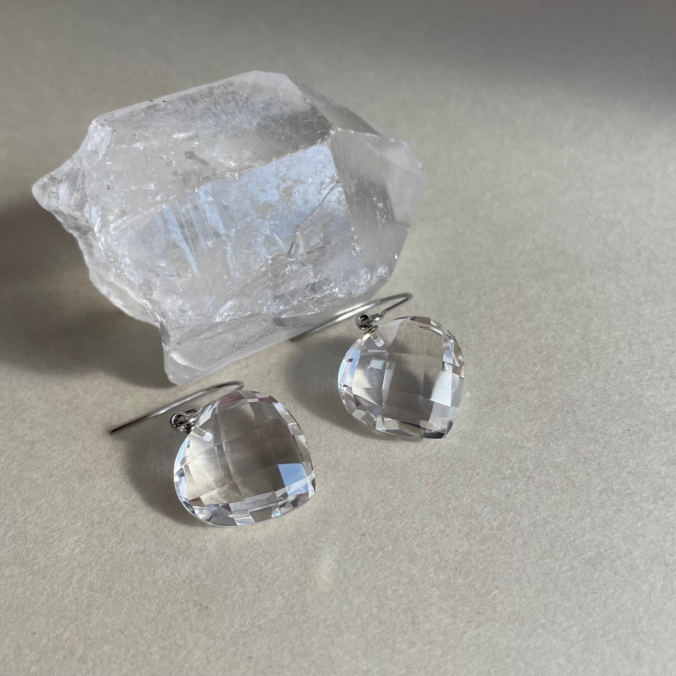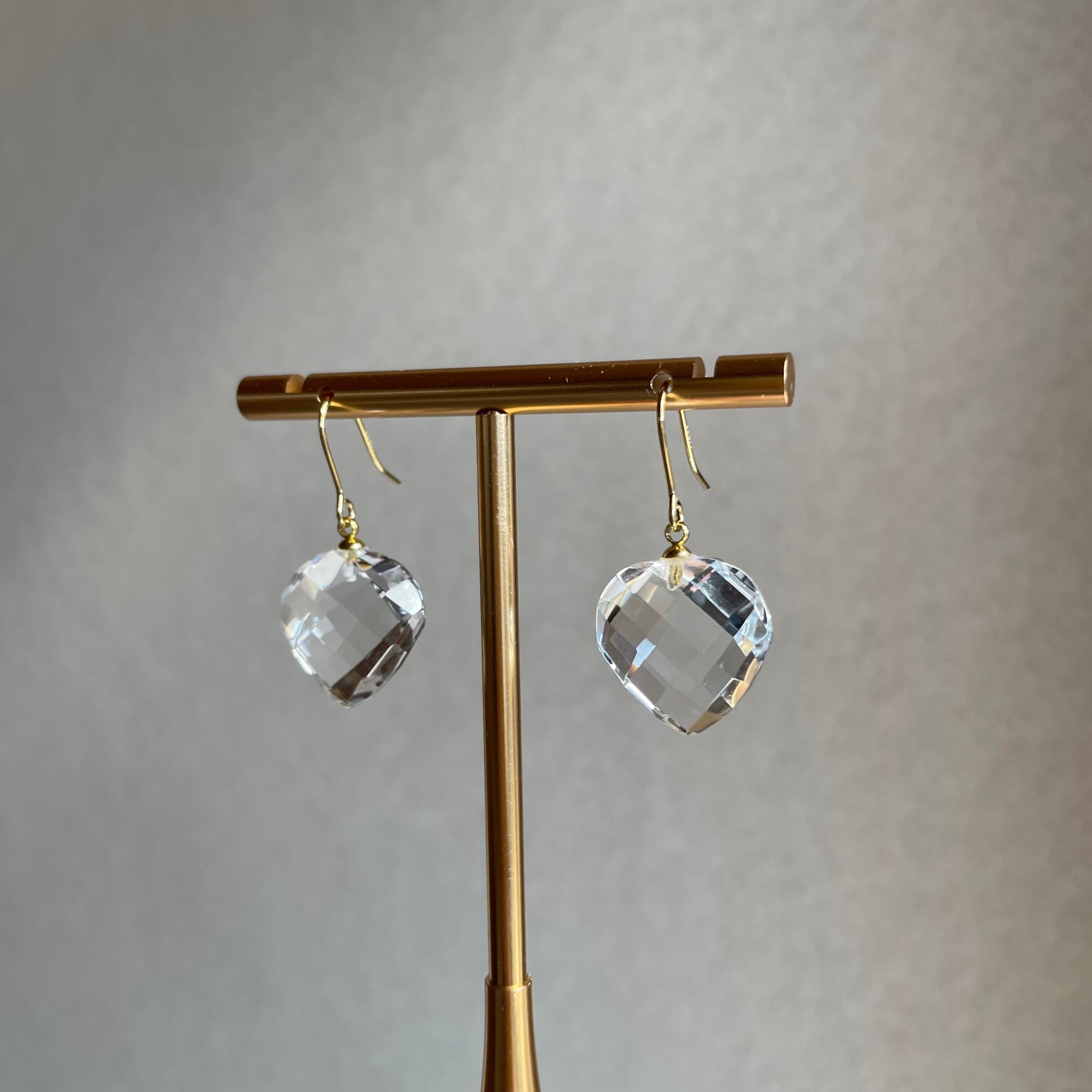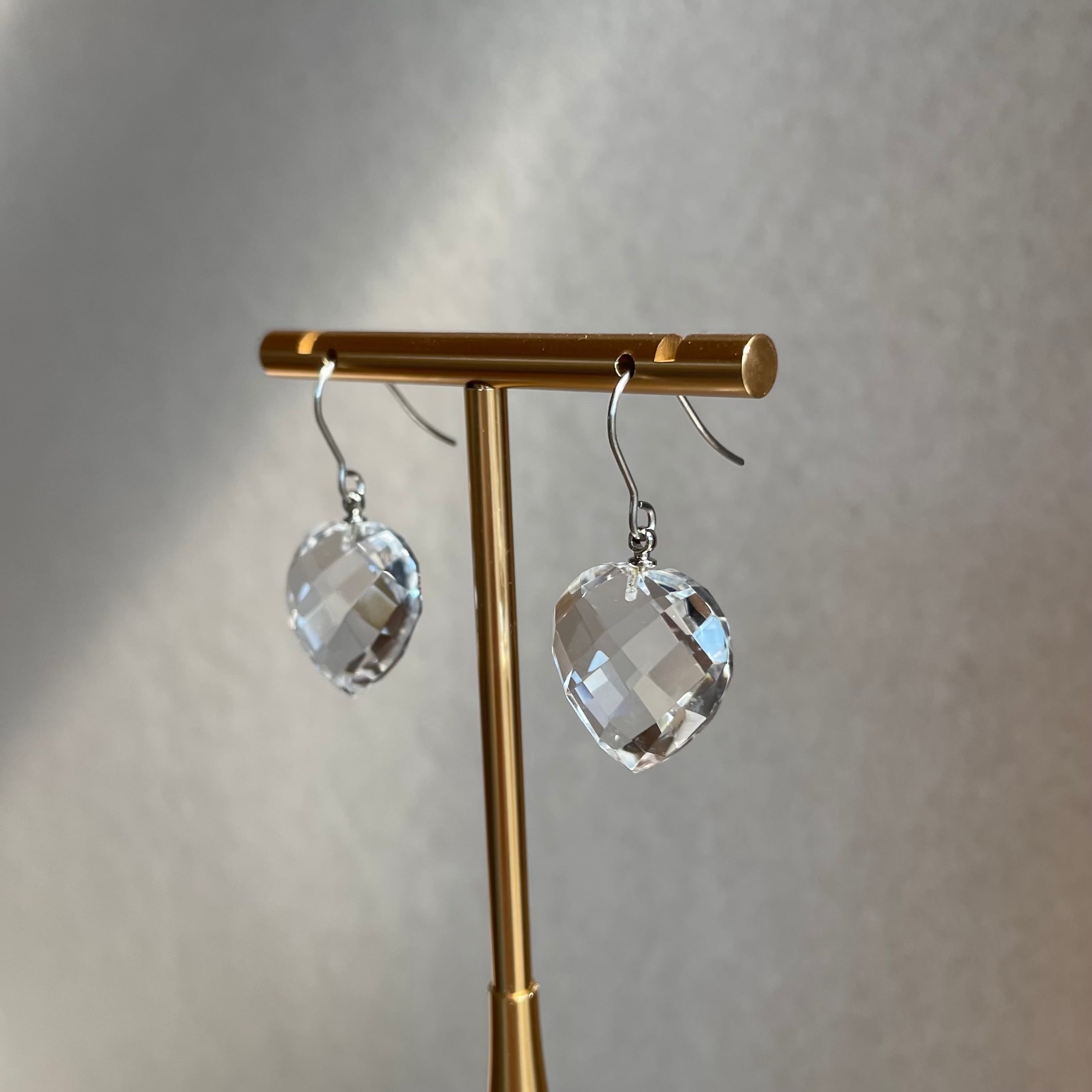 透明度の高い水晶を使用した、シンプルで上品なハートピアス。