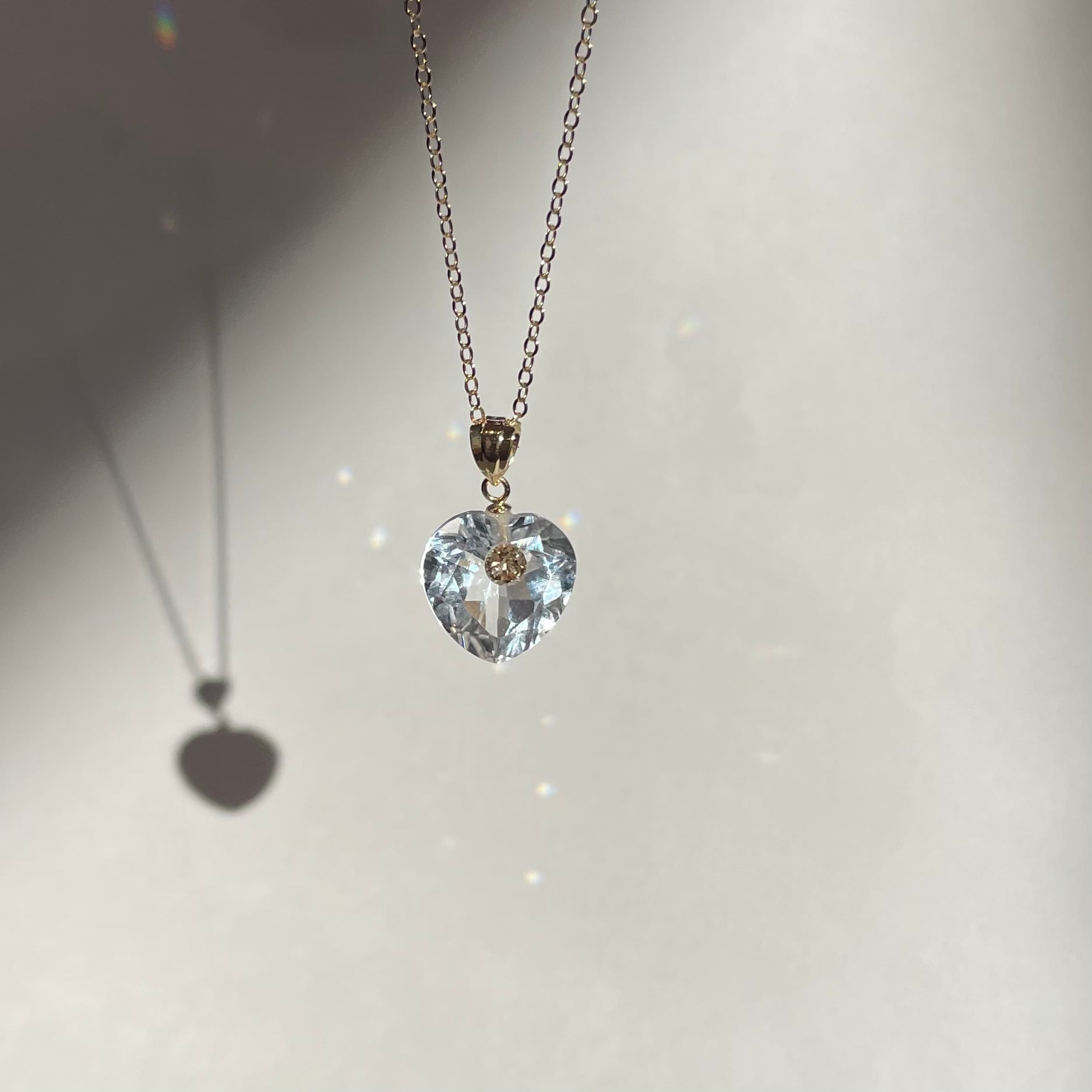 水晶のハートカットに落ち着いたブラウンダイヤを